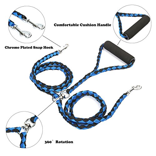 Product Description Rickpet Double Dog Leash,Heavy Duty 54 Inches Braided Tangle Free 360°Rotation Dual Dog Walking Leash with Soft Handle for Twin Large Medium Small Dogs 0