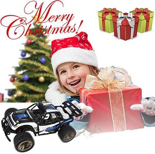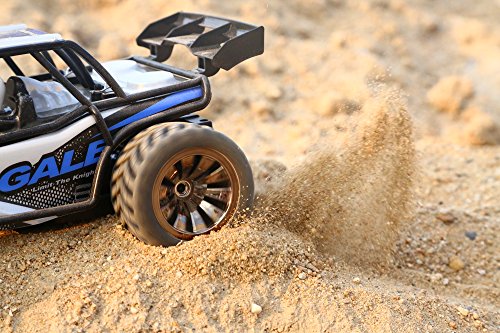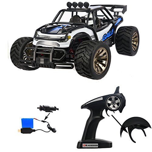 Main Features: 2.4GHz transmitter power ensures the strong anti-jamming capability. 2 wheel drive shows a stable and fast control. 1/16 Scale makes the rc car cooler, simulate its structure and control from real. 50m control distanc,Max to 15km/h high speed theoretically, challenge the limit, just enjoy the race with friends. The size and speed of the truck fits not only kids, but adults. Realistic desert buggy looks: it like a real desert buggy and even looks the part thanks to 1/16 scale detailed design, desert buggy style body, roll cage and driver cockpit. Easy to use: pistol grip style transmitter. Pistol grip style transmitter make it easy to control even a 5 years kid 15mins battery life: included usb charger gives you the convenience of charging.