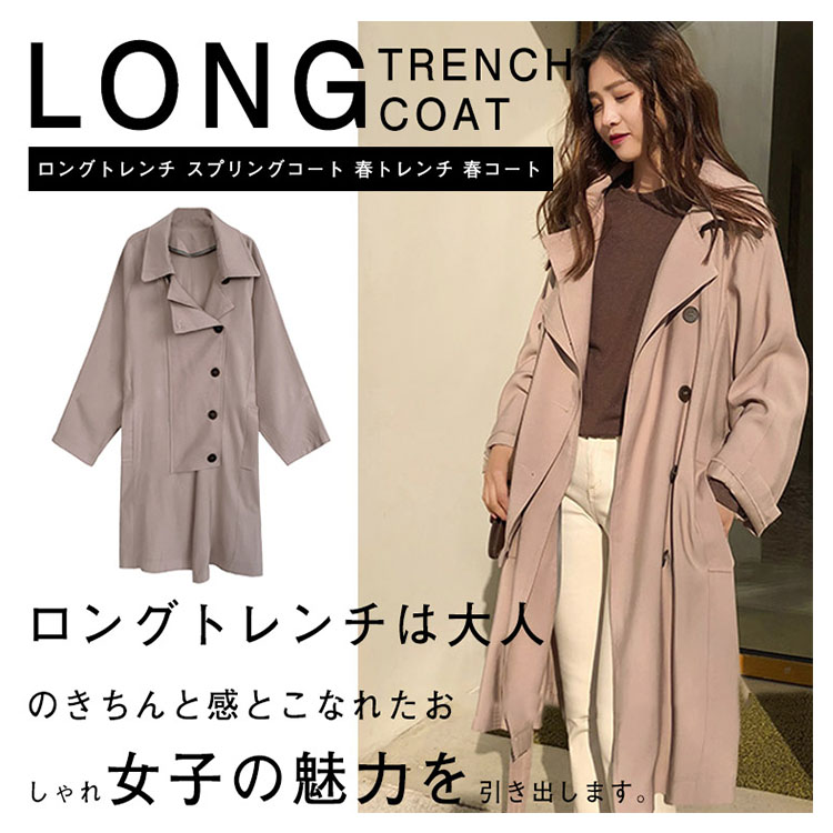 | 大人女子の春アウターといえばトレンチコート!デイリーに使いたくなること間違いなしの嬉しいアイテムです。ロングトレンチは大人のきちんと感とこなれたおしゃれ女子の魅力を引き出します。普通のトレンチコートよりも軽めで羽織やすく、幅広いコーディネートに着回せるので、ロングシーズン大活躍間違いなし!! | |