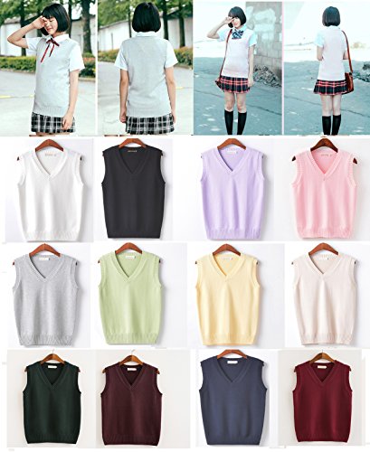 -. Title : UNIYA(ウニヤ) Vネック スクール ニット ベスト 無地 女子高生 コスプレ衣装 防寒 ユニフォーム ノースリーブ シンプル オフィス 冷房対策 学生 制服 リアル チョッキ オールシーズン
