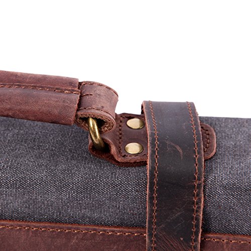 Premium cotton canvas, quality genuine crazy horse leather. Material: high density water canvas: bronze skin with hardware; first layer of cow leather; Great for school, outdoor living and journey.