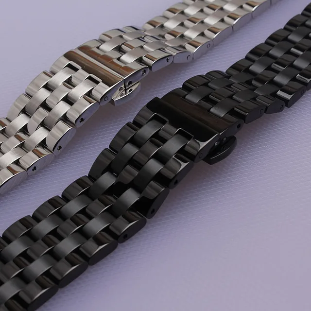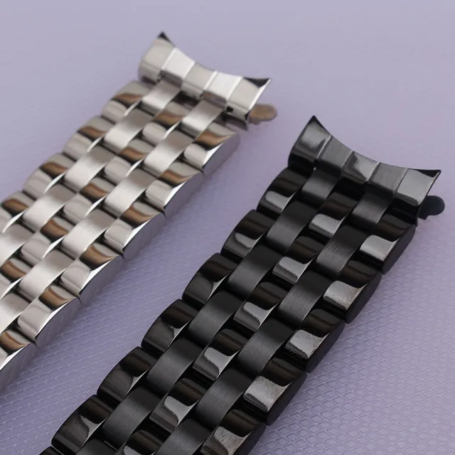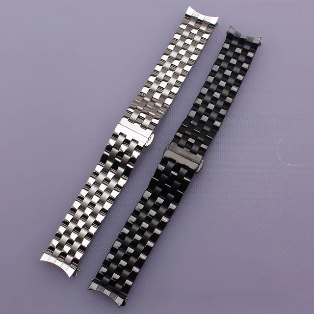 | [해외]16 미리메터 18 미리메터 20 미리메터 22 미리메터 24 미리메터 높은 품질 실버 Depolyment 검은 금속 시계 밴드 팔찌 일반적인 곡선 엔드 평면 종료 |