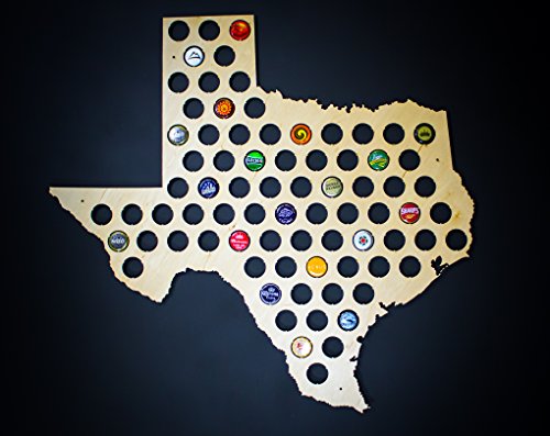Texas State Beer Cap Map! - Choose your favorite state and fill it with your favorite beer caps! Nails for mounting through the predrilled holes included. Approximate thickness 0.2"-0.25" Looking for an amazing Father's Day gift idea for the craft beer lover? Use this beautiful state beer cap map to collect the bottle caps from your favorite breweries and snap them into this high quality wooden map. The three point retention system securely holds standard size [twist and popoff] beer caps in style. Mount it on your wall with the included nails that fit into several pre-drilled mounting holes. The map is crafted out of high quality 1/4" wood and has a glossy smooth UV-resistant wood finish already applied and will look great against any background. Our Beer Cap Maps are the ultimate gift for the beer connoisseur in your life. The maps also make phenomenal groomsmen gifts for all your beer-drinking friends. Hang this highly detailed map above your bar, in your garage, man cave, kitchen, or brewery. It's a great way to show off the places you've been, the local brews you love, or just your favorite color caps. No matter how the beer was, we promise you'll love this map. Here at Skyline Workshop, we're proud to make the most detailed and highest quality beer cap maps on the market today, and we back that with a 100% satisfaction guarantee. If you're not satisfied for any reason, contact us and we'll make it right as quickly as possible. From the lumberyard where we source our raw material to the final steps of packaging up your new map, we do our best to maintain excellence at every step of the process. We hope you'll choose Skyline Workshop because you know you'll get the best. If for any reason you're not satisfied, please contact us and we'll make it right.Feature