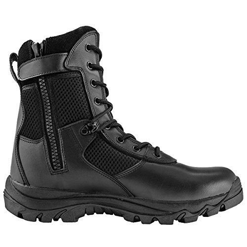 The Maelstrom® LANDSHIP 8" Tactical Boot with Zipper is the ultimate choice for law enforcement professionals and outdoor enthusiasts. The LANDSHIP boot has an upper combination of full grain leather, breathable air mesh and suede. Behind the scenes the boot enhances the breathability with the use of perforated foam padding. To further enhance the moisture management system, antibacterial and moisture-wicking linings are applied. This combination of materials will keep your feet comfortable and dry throughout your long shift. The lightweight shock-absorbing midsole system provides the ultimate in support for high impact activity with superior compression and rebound resulting in comfort, stability and speed. This cushioning system sits on top of our specifically developed outsole, which has deep threads for great traction in all terrains. Additionally, the YKK side zipper enables quick on and off. Designed to be lightweight, comfortable and fast, the LANDSHIP boot incorporates cutting-edge athletic design features, traditional construction processes for proven durability and a great value. They are ready to wear right out of the box with no break in time needed.Feature
