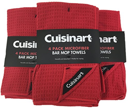 Cuisinart Microfiber Waffle Bar Mop Towels, 12 Pack, 16 x 19 Inches, Red