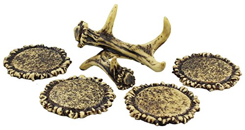 Decorative Rustic Antler Coaster Set - 4 Coasters & Holder