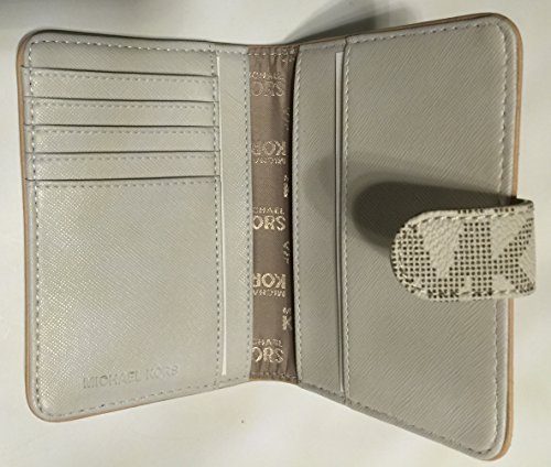 Michael Kors Jet Set Passport Case Holder Vanilla PVC with polished golden tone hardware Tab and snap closure with MK nameplate on the front Leather and MK logo nylon interior features 5 credit card slots Interior also features 4 open slip compartments 3.75" (L) x 5.25" (H) x 1" (W)Feature