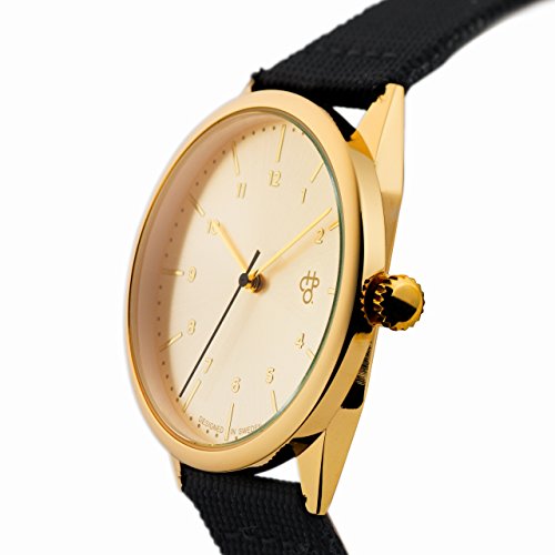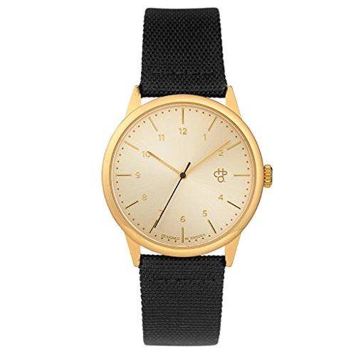 손목시계 CHPO 설대야 (골드 메탈 / 블랙 캔버스 & 레더) Rawiya Classic Gold 디자인 손목시계 14234DD 【정규 수입품】