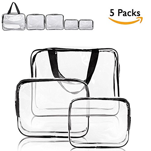 - * 5-PACK MAXIMIZ SPACE: Travel organized, reduce mess with these small to large sized clear zipper travel pouches, perfect for cosmetics, toiletries, baby items, shaving kit, electronic devices, perfume, sunglasses, lipstick, facial cleanser, passport and so on.