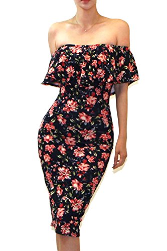 Off shoulder with ruffled detail overlying. pair it with a sky-high pump would be much perfect.