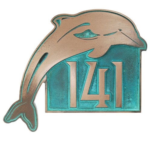 -. Title : Dolphin Address Plaque - 13x11 - Raised Bronze Verdi Metal Coated Sign
