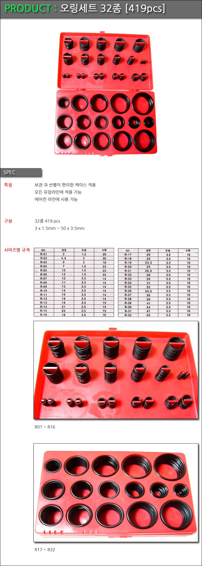 - 품명 및 모델명오링세트 32종 [419 pcs]