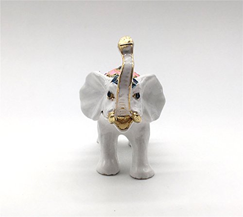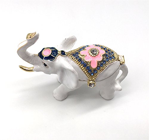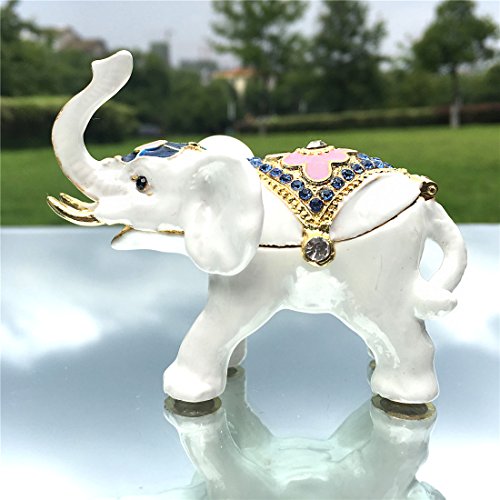 White Elephant Ring Holder Trinket Box Animal Figurine Collectible Large Jewelry Box with Gift Box