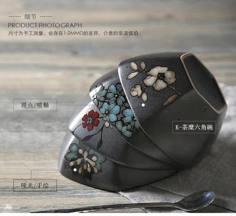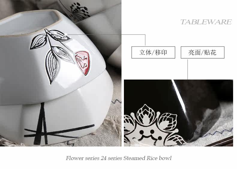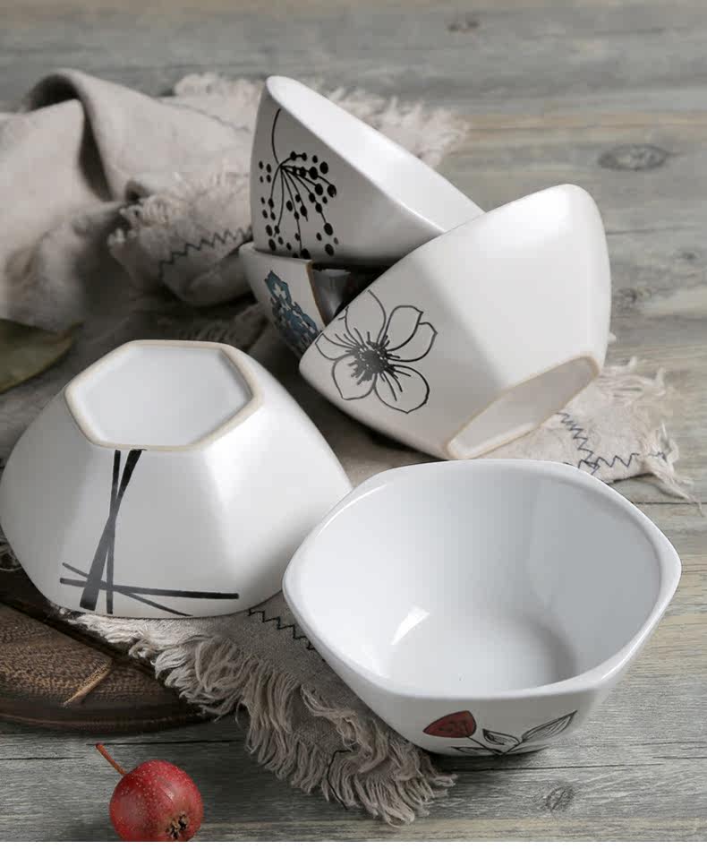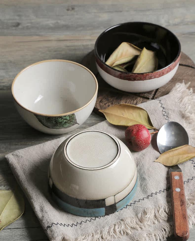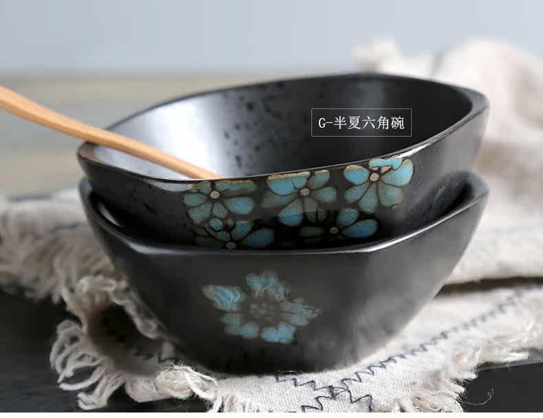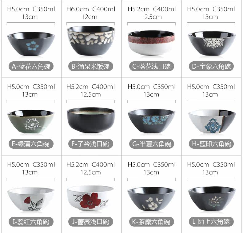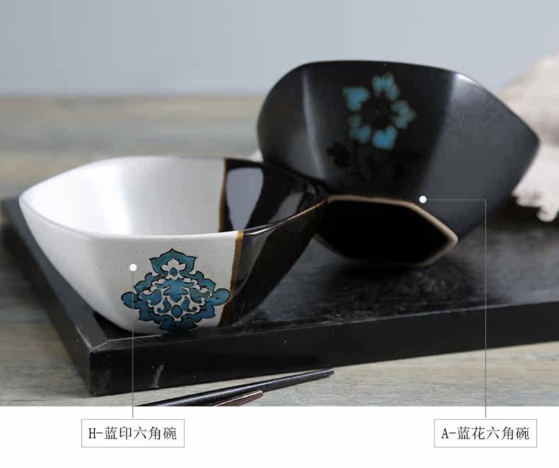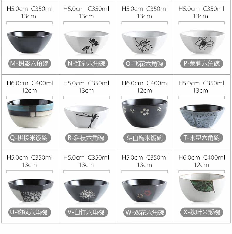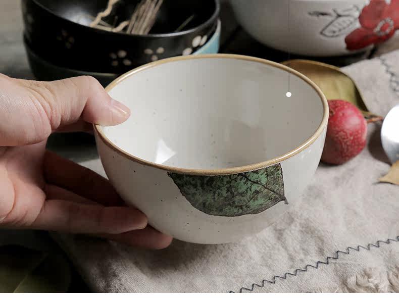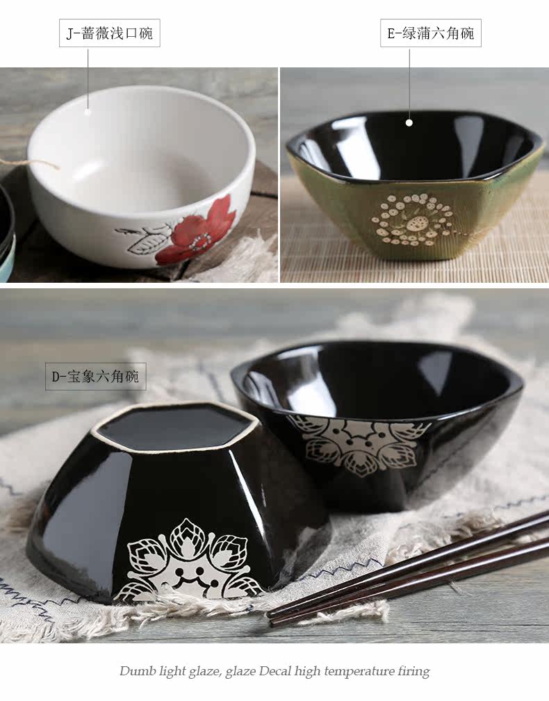 日式釉下彩陶瓷碗餐具套装家用陶瓷碗5英寸米饭碗小汤碗护饭套装