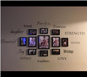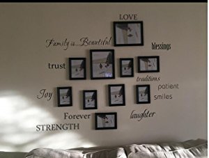 Family Wall Decal Set of 12 Family Words Quote Vinyl Family Wall Decal Family Room Art Decoration Living Room Decor (Black)
