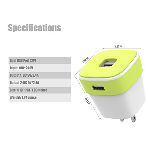 Wall Charger, Tonicstar Dual USB Power Adapter 2.4A 12W for Travel