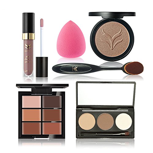 - A great start makeup kit for face, lip and eyes makeup, including single pressed powder highlighter, 3 colors eyebrow powder, 1 lip gloss stick, 1 powder sponger, 1 face foundation brush and 6 colors concealer . Suitable for those aged 12 and upwards.