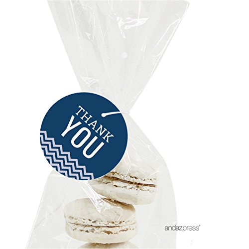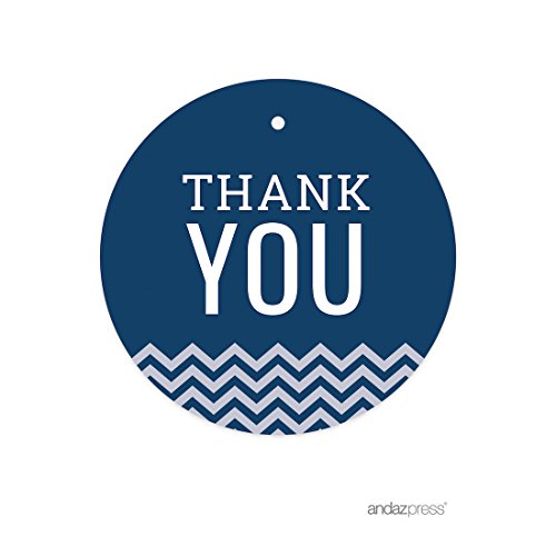 Andaz Round Circle Gift Tags, Chevron Style, Thank You, Navy Blue, 24-Pack, For Nautical Ocean Sea Sailor Themed Party Favors