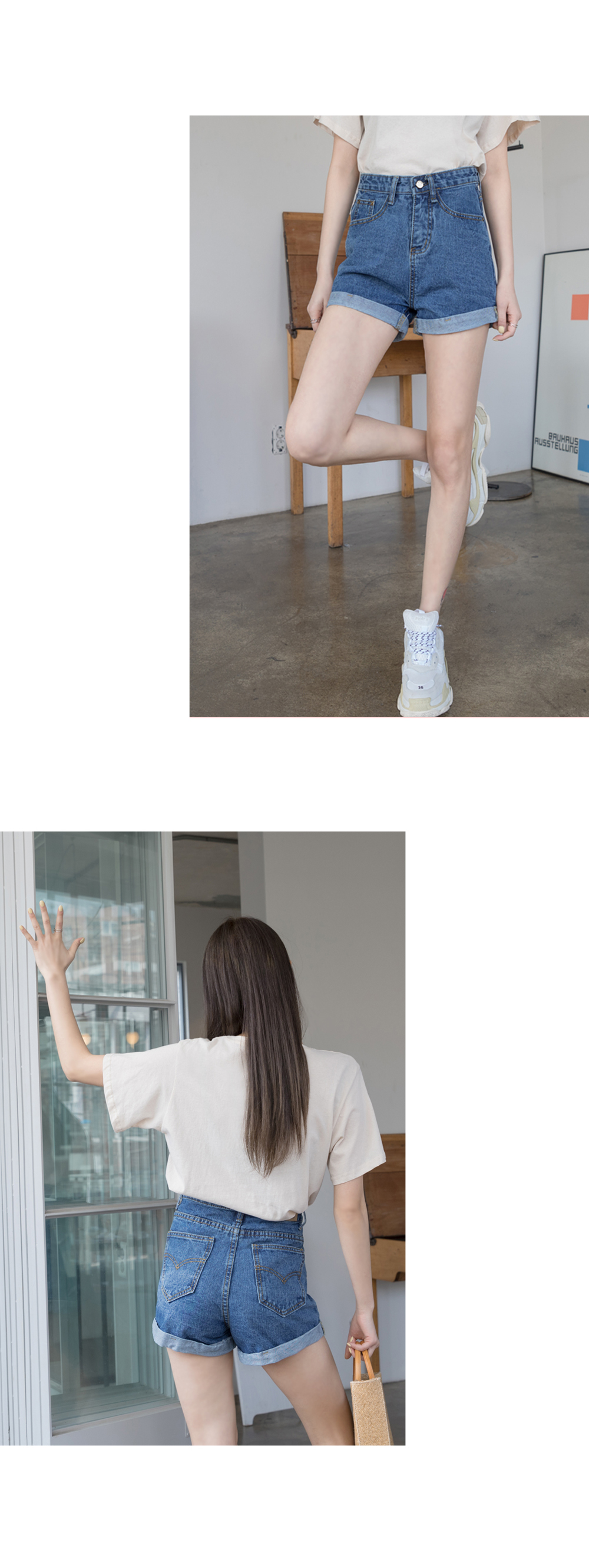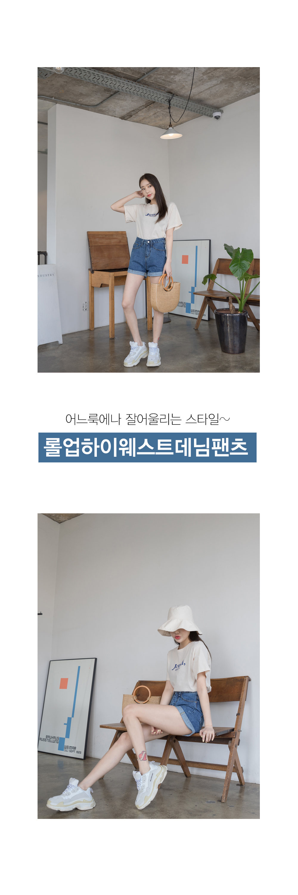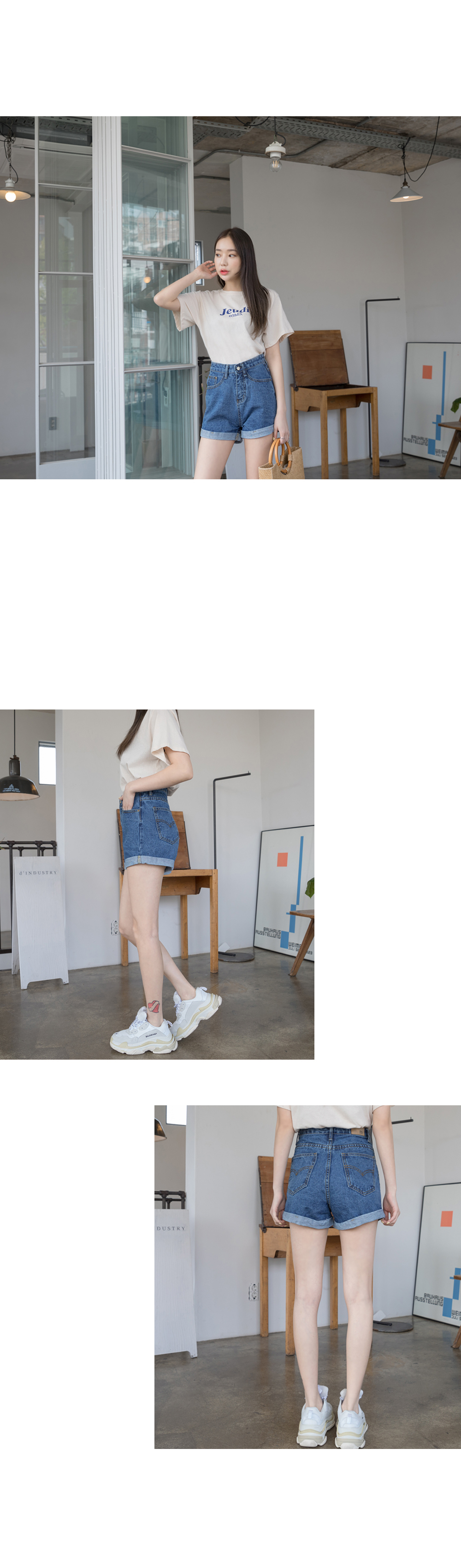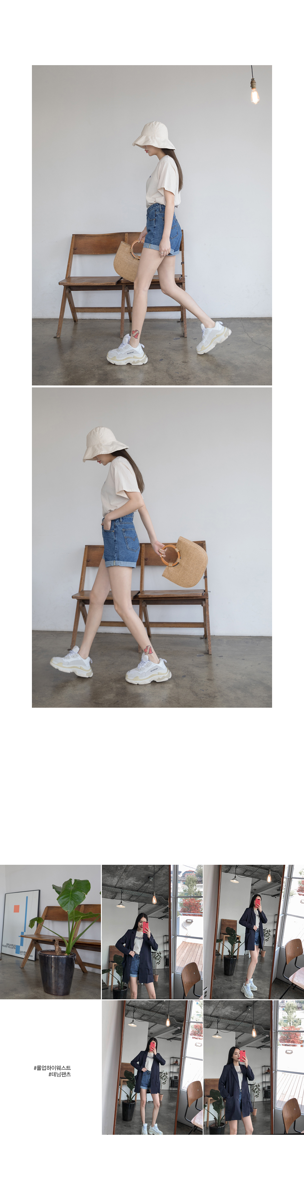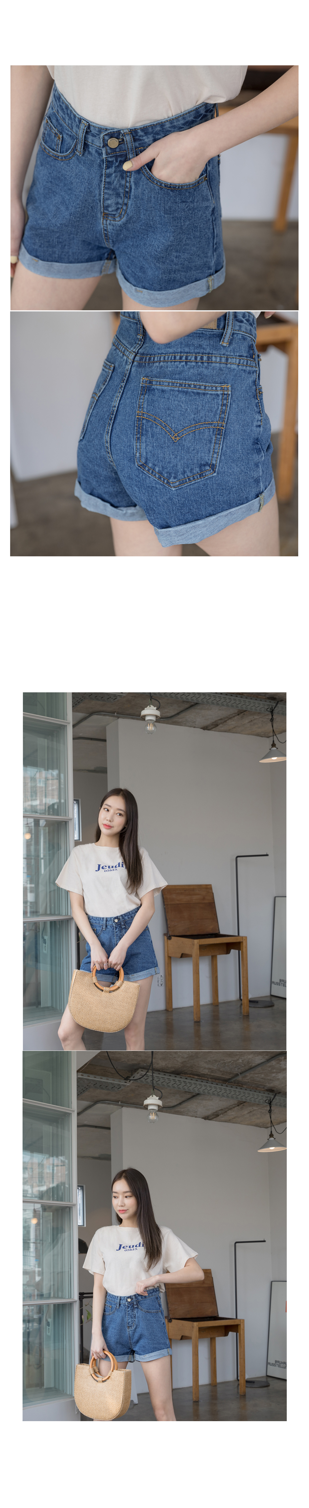 롤업포인트 하이웨스트 숏데님팬츠에요!
