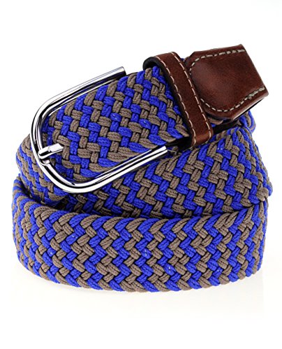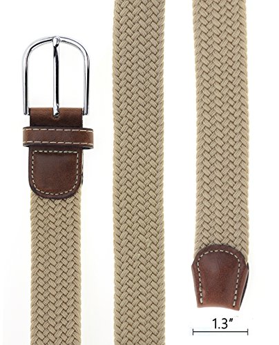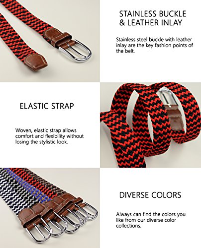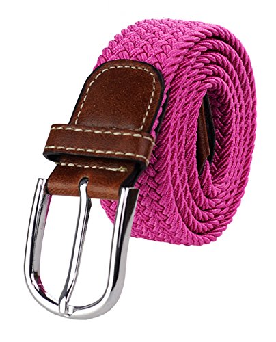 -. Title : NYFASHION101 Rounded Metal Buckle Brown Inlay Elastic Braided Woven Stretch Belt