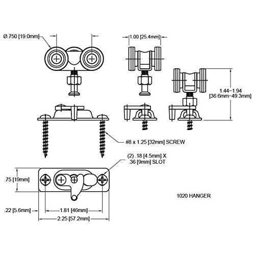 Product DescriptionCountry of Origin: USA. Height: 1.44" - 1.94". Length: 2.25". Load Capacity: 80lbs. Product Type: 111 Series Door Hanger. Sold: Each. Width: 1".0