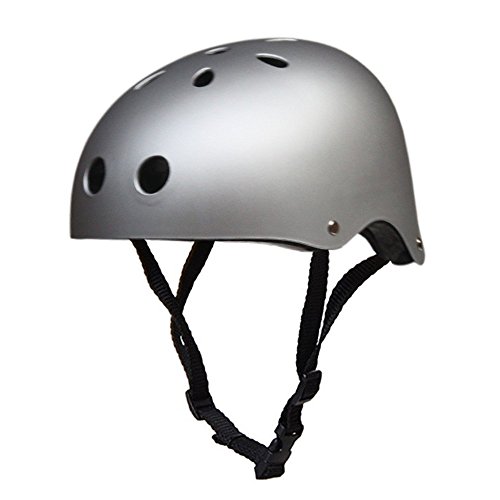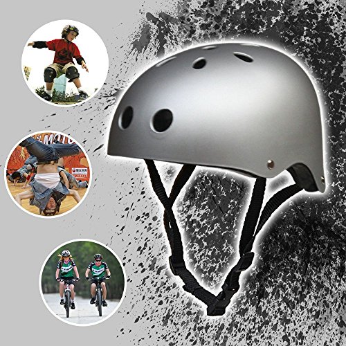 Sunki Original Classic Commuter Bike Skate Protective Helmet Adjustable CPSC Certified Skateboard / Ski / Skating / Roller Helmet Gear for Kids Youth Adult Size Medium Silver