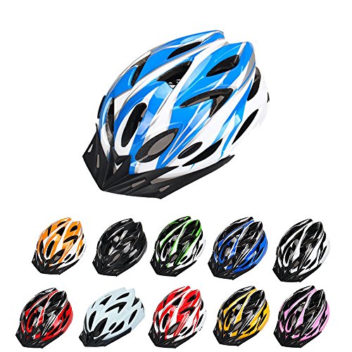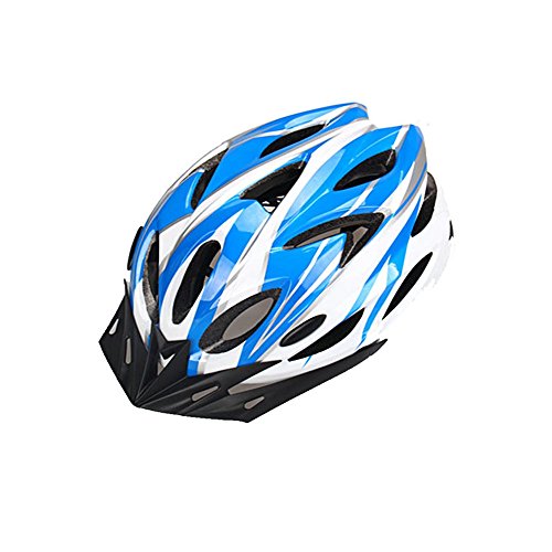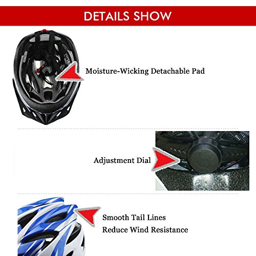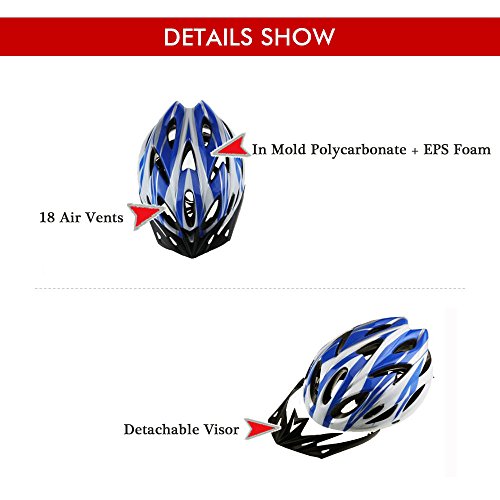 Sunki Adult Men / Women Cycling Safety Helmet Adjustable Road Mountain Bike Bicycle Visor Helmet Ultralight Inner Padding Chin Protector Blue+White