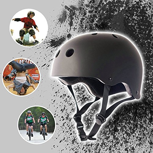 Sunki Original Classic Commuter Bike Skate Protective Helmet Adjustable CPSC Certified Skateboard / Ski / Skating / Roller Helmet Gear for Kids Youth Adult Size Medium Black