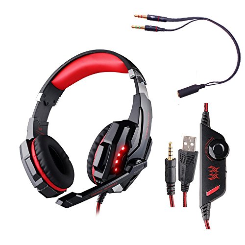 [Update Version] PC PS4 Phone Gaming Music Headphone, EACH G9000 3.5mm Game Gaming Headset Microphone LED Light with Combo Connector for Sony PlayStation 4 Laptop Computer Tablet Smartphone
