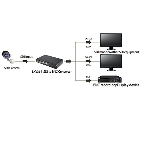 - Feature : This LKV364 converts SDI signal to analog composite video signal and supports both PAL/NTSC output. It can separate audio from SDI to allow connection with earphones or other sound devices and achieve to output image and sound at the same time perfectly. / Besides, it has SDI splitter function(1SDI input and 2 simultaneous SDI outputs.)and caters for the needs in SDI broadcast room, no-linear editing field.CCTV security and training showroom etc. / SDI splitter function, it supports SD-SDI(270Mbps) HD-SDI(1.485Gbps) and 3G-SDI(2.97Gbps) distributes to 2 simultaneous SDI outputs. / SDI repeater functio, it provides equalized and re-clocked transmission and supports signal input and output distances of up to 400 meters for SD-SDI signal, 200 meters for HD-SDI signal and 100 meters for 3G-SDI signal. / SDI converter function, the BNC port outputs composite video(CVBS) and R/L audio port outputs audio signal at the same time. Select PAL/NTSC system by P/N switch.