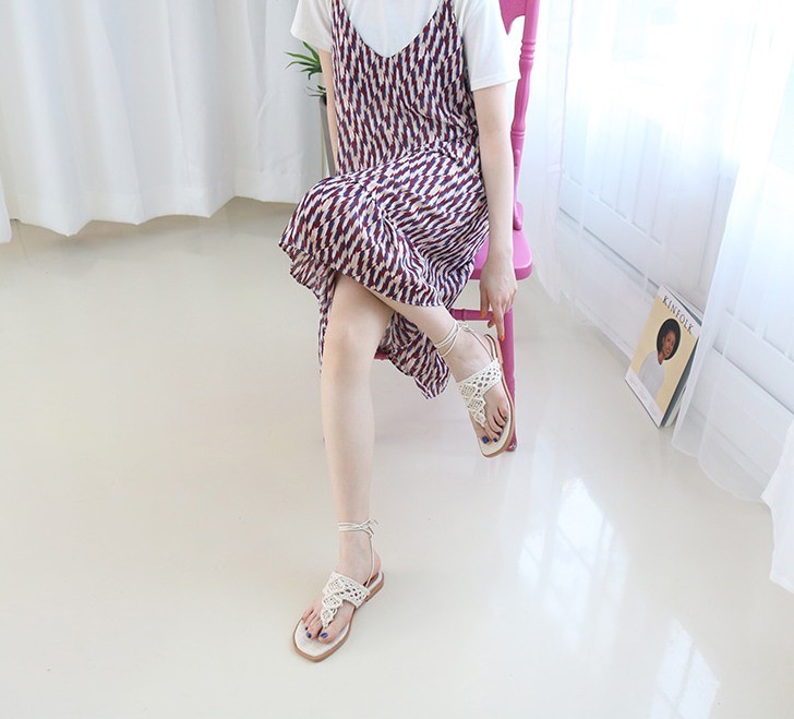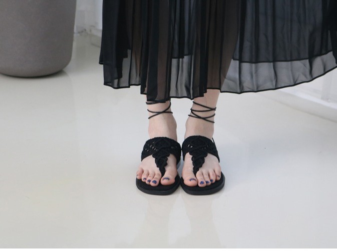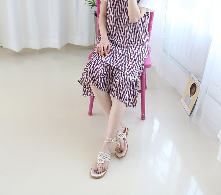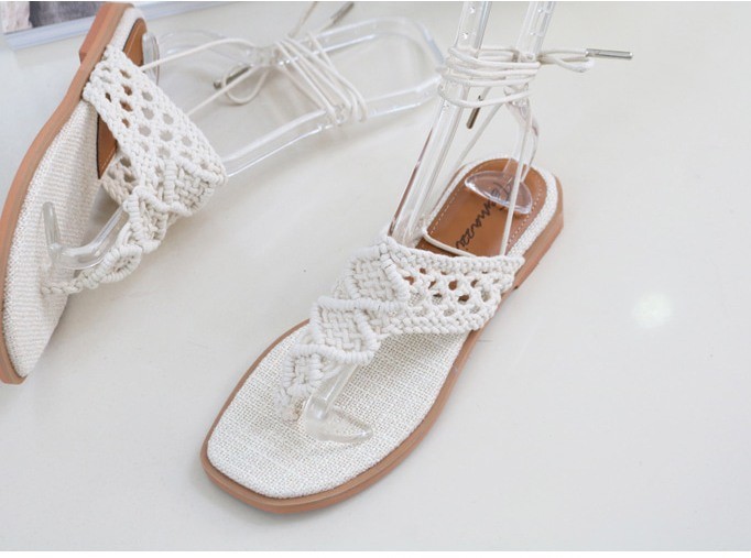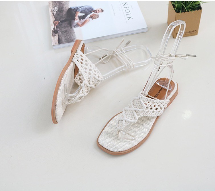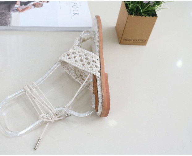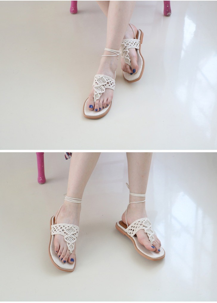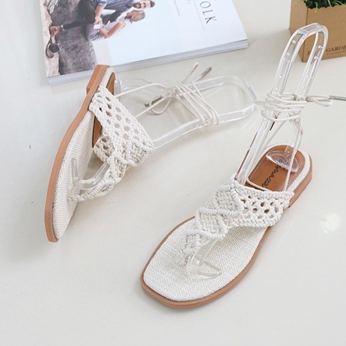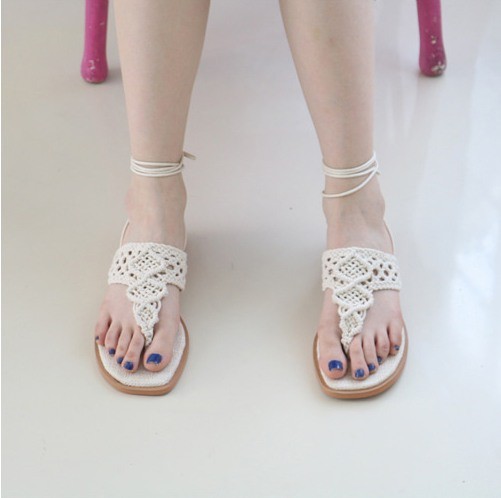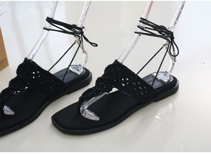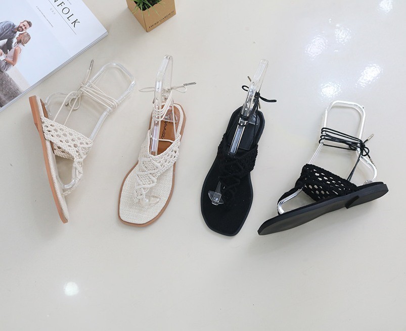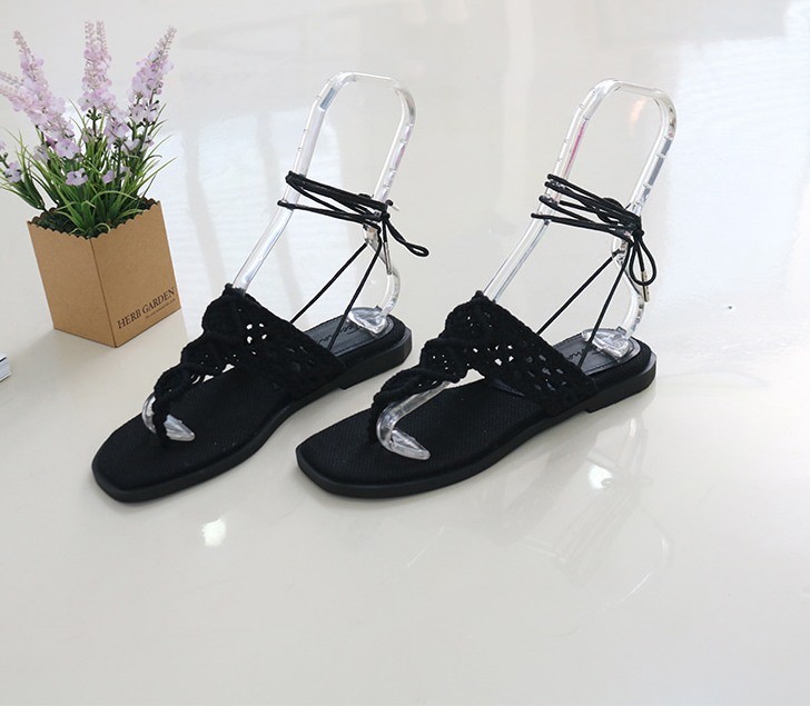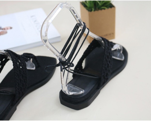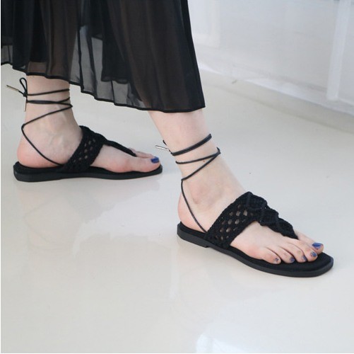商品名:サンダル レディース ニットストラップ ペタンコ レースアップ フラットヒール 2018 春 ファッション 靴 婦人靴