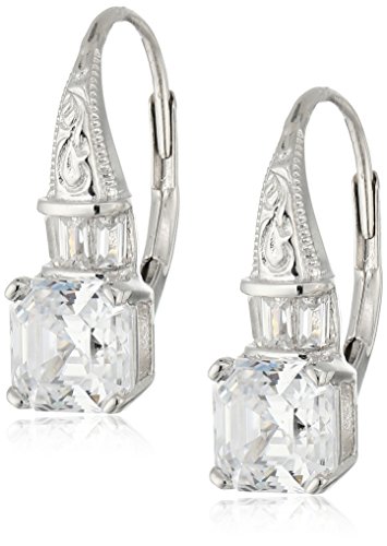 Platinum-Plated Sterling Silver Swarovski Zirconia Asscher-Baguette Lever Back Earrings