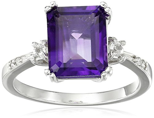 -. Title : 10k White Gold, Emerald-Cut Gemstone, and Diamond Accent Ring, Size 7