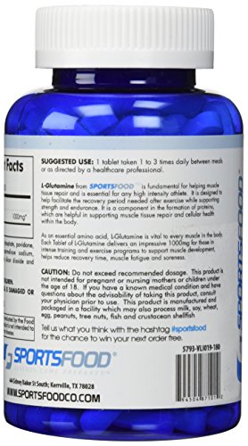 -. Binding : Health and Beauty -. Brand : Sports Food -. EAN : 0794504871012 -. Feature : Formulated for Rapid Disintegration and Maximum Absorption / Exceptional value - 180 l-glutamine tablets (1.5x ON® but far less than 1.5x the P.R.Ice) / More milligrams than competitors - 1000mg per tablet, smaller dosage / Easy to swallow tablets for convenience / High quality Glutamine - Sourced from the largest suppliers in the world -. IsAdultProduct : 0 -. Label : Sports Food -. Manufacturer : Sports Food -. MPN : LG1000T180 -. PackageQuantity : 1 -. PartNumber : LG1000T180 -. ProductGroup : Health and Beauty -. ProductTypeName : HEALTH_PERSONAL_CARE -. Publisher : Sports Food -. Studio : Sports Food -. Title : Sports Food 1000mg L-Glutamine - 180 Tablets -. UPC : 794504871012