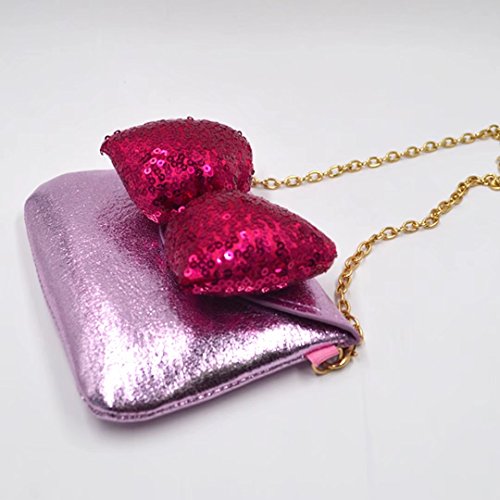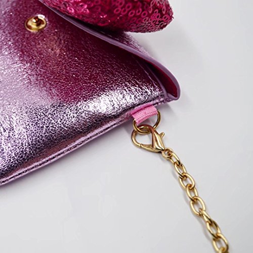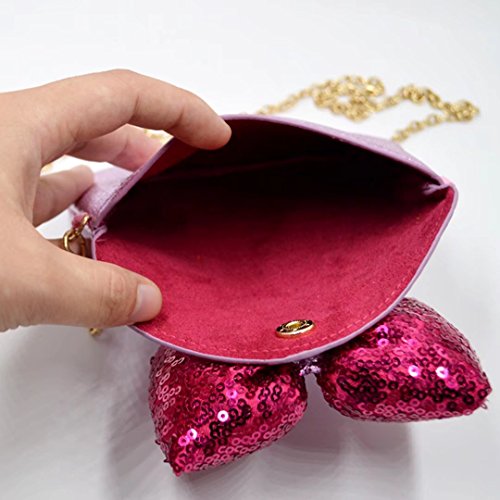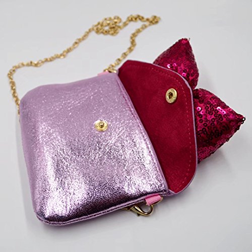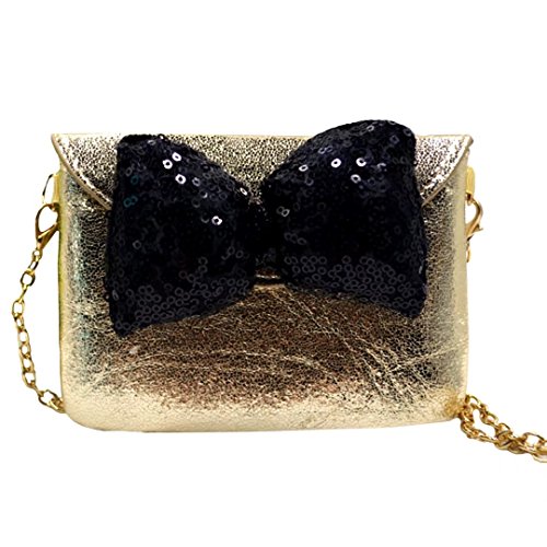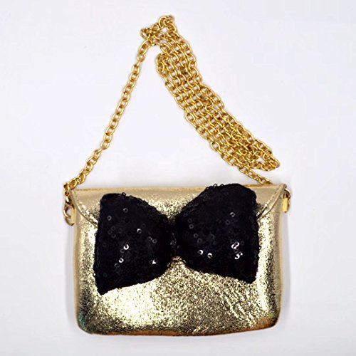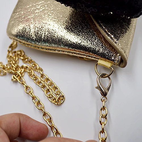 Cute sequin butterfly knot, blinking metallic style, chic retro fashion design. Detachable chain shoulder strap, three wearing ways, enough length to carry on shoulder or hold in hand. Handy compact size, works perfectly for all occasions.
