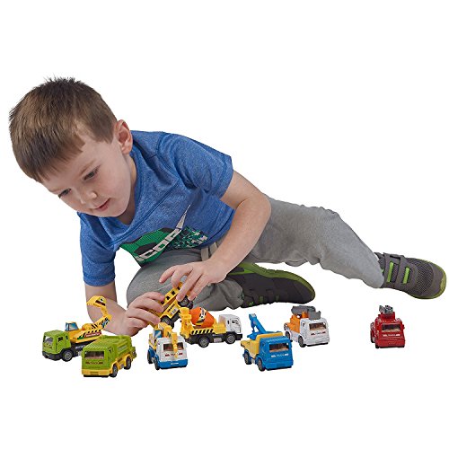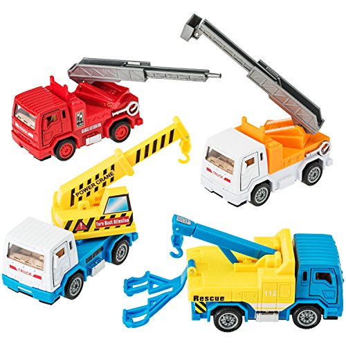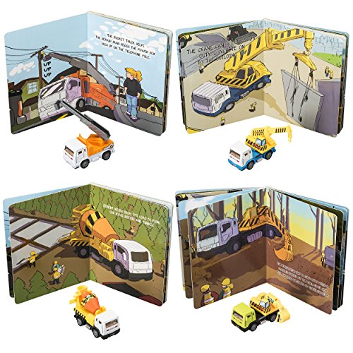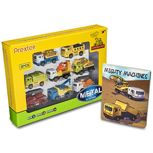 -. LegalDisclaimer : Caution: Construction Fun ahead... :) Prextex High Quality Friction Powered Construction Vehicles and Hard Cover Book is the Perfect Addition to your Child's Imaginary World! Set Includes: 8 Die Cast Metal Vehicles- Bucket Truck, Cement Mixer, Crane, Dump Truck, Excavator, Fire Truck, Garbage Truck, and Tow Truck, 1 Book with Colored Illustrations that Corresponds with the Construction Toy Vehicles. Doors of Vehicles Open and Close and Other Parts of Vehicles are Moveable as well. Use them in Your Backyard or Playroom- Works Great on Floors and Carpet. Just Pull 'em and Watch 'em Take Off. Makes a Fabulous Gift for Vehicle Lovers for any Which Occasion!