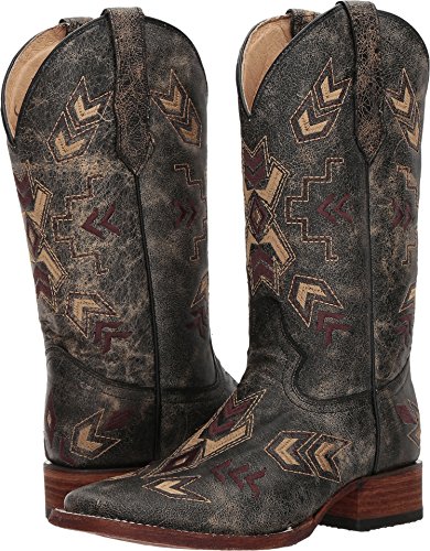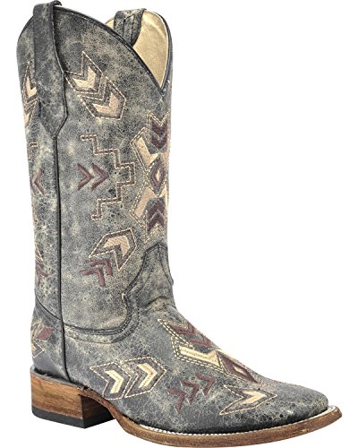 Studio : Corral Publisher : Corral Binding : Apparel Product Description Corral Boots are stylish examples of finely crafted western sophistication for women anywhere. These Corral Cowgirl Boots are made from genuine distressed cowhide leather and feature gorgeous embroidered Native American-inspired design accents. Walk with confidence and style in these Corral boots. 0