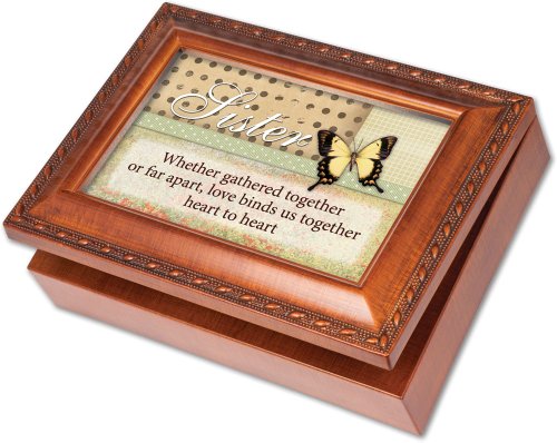 Title : Cottage Garden Sister Gathered Woodgrain Music Box / Jewelry Box Plays Light Up My Life