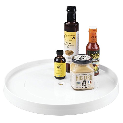 -. Title : mDesign Lazy Susan Turntable Spice Organizer Rack for Kitchen Pantry, Cabinet, Countertops - 14", White