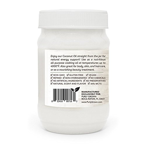 Purly Grown Organic Cold Pressed Refined Coconut Oil, 16 oz (Refined & Extra Virgin available): Coconut Oils For Healthy Cooking, Beauty, Skin Care & Hair Care