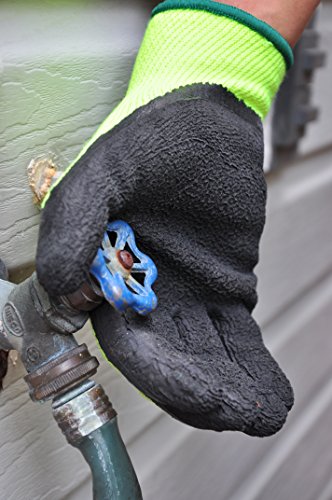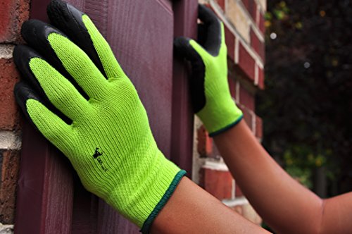 G & F 1516L-3 Premium High Visibility Work Gloves for General Purpose, MicroFoam Double Textured Latex Coated Work Gloves, Garden Gloves, Men and Women Work Gloves, Large, 3 Pair Pack