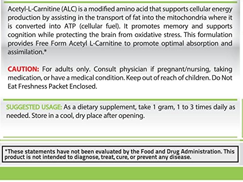 Acetyl L-Carnitine by Pure Nutrition is a modified amino acid that supports cellular energy production by assisting in the transport of fat into the mitochondria where it is converted into ATP (cellular fuel).It promotes memory and and supports cognition while protecting the brain from oxidative stress. This formulation provides Free Form Acetyl L-Carnitine to promote optimal absorption and assimilation.