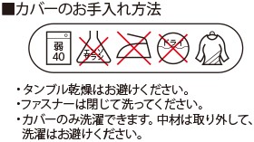 | ご使用上のご注意 | ●ポリウレタン素材が火気に対し引火性がありますので火気には十分お気をつけください。●気温が約10℃以下になりますと性質上硬化しますが使用上影響はありません。●生地部分に爪を立て、無理に引っ張ると破れるおそれがありますのでご注意ください。●本品の中材は性質上、時間の経過により黄変したり、カバーの色が中材に移るおそれがありますが、品質上問題はありません。●本品の中材は発泡素材の為、表面に穴が開いている場合がありますが、品質上問題はありません。●使用感には個人差があります。●カバーのみ洗濯できます。中材は洗濯できません。●火気のそばや高温多湿な場所、直射日光の当たる場所には保管しないでください。●乳幼児の手の届かない場所に保管してください。●本来の目的以外でのご使用はおやめください。●印刷の都合上、実際の商品と多少色が異なる場合があります。 |