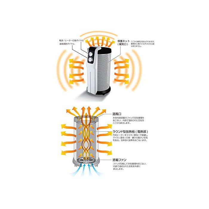 저부에는 1050회전/분의 팬이 내장 되고 굽히고, 내부에서 따뜻하게 해진 공기를 상부에 배출합니다.