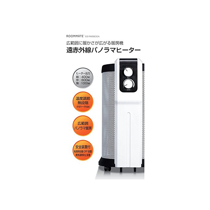 색:화이트 전원:AC100V 50/60Hz 소비전력:400W / 600W / 1000W 제품 사이즈:약폭31x(길이)깊이31x높이59cm 제품 중량:약3.6kg 코드 길이:약1.3m 기능:히터 교환3단계(약중 남짓)고, 온도 조절 다이얼(무단계) 안전장치:전도 시 자동OFF장치,이상 과열 방지 장치 재질:ABS수지,스틸 부속품:취급 설명서,보증서