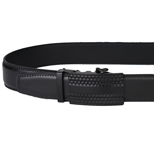 MAXIMUM DURABILITY - Leather strap is a bit wider than 1 2/5" presenting the perfect look of a fine, genuine leather quality belt, complemented with an HIGHLY FASHIONABLE stylish, buckle that is elegantly designed with class. Scratch resistant buckles made to last.