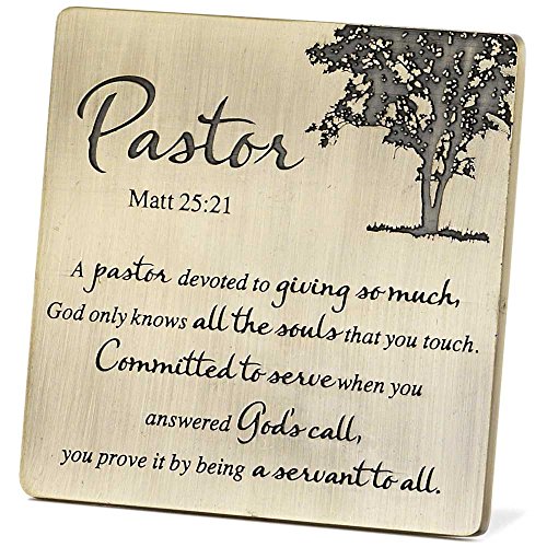 Pastor Servant to All Matthew 25:21 Antique Brass 4 x 4 Metal Table Top and Wall Sign Plaque