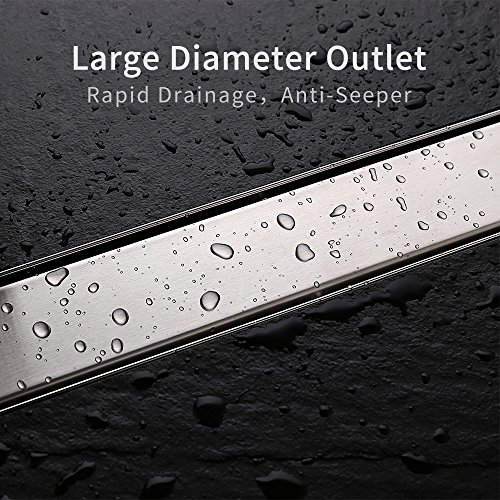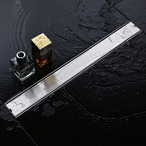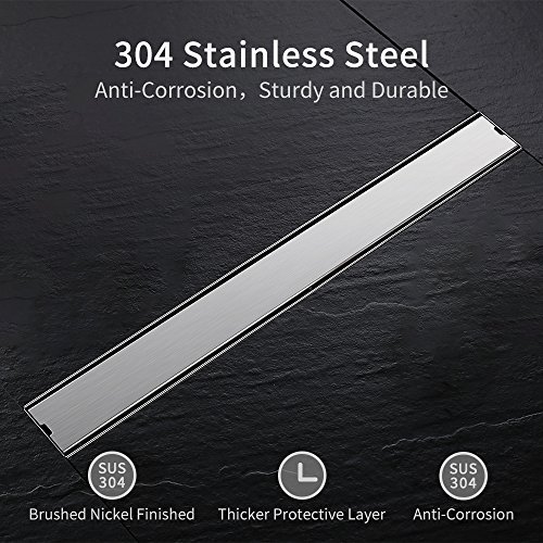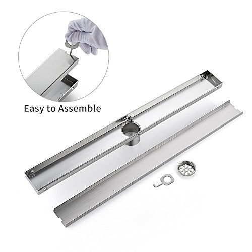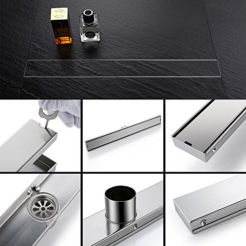 Desfau Linear Shower Floor Drain,24-Inch Tile Insert Bathroom Shower Floor Drain,Anti-Corrosion SUS304 Stainless Steel Shower Floor Drain with Removable Cover