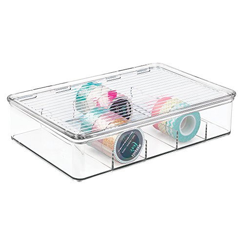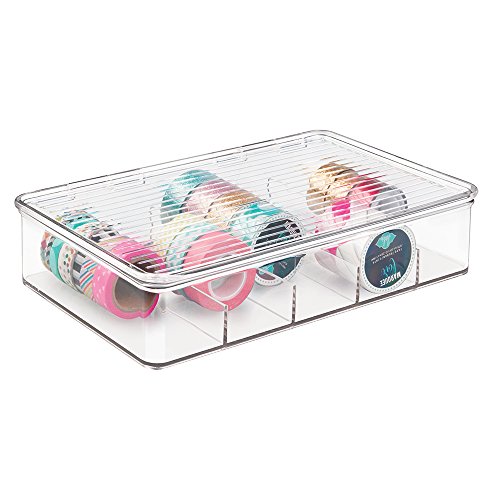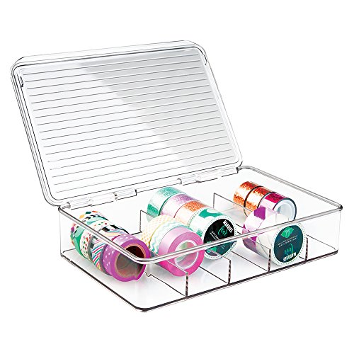 mDesign Art Supplies and Crafts Organizer Box for Washi Tape, Ribbon - 5 Compartments, Clear