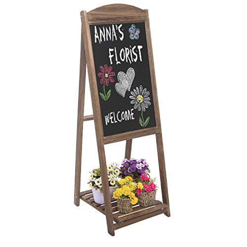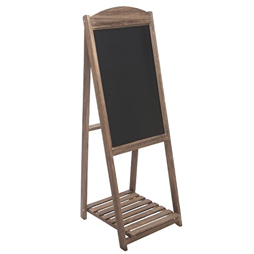 MyGift Rustic Wood A-Frame Easel Chalkboard, Erasable Memo Board w/ Shelf, Brown